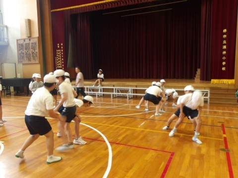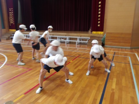 力試しの運動です。「すもう」に着目して,まずは四股を踏んでみました。