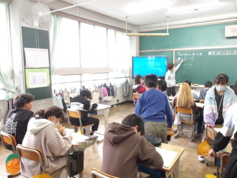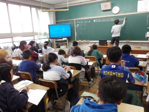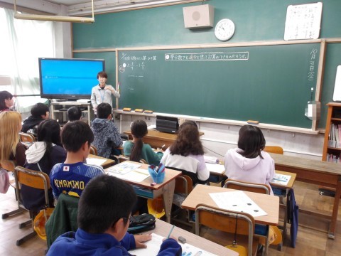 算数では,帯分数でも通分を使って計算できるかについて考えます。学び方や学ぶ相手を選んで学習を進めます。