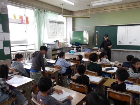 国語「お手紙」では,各場面ごとに,がまくんとかえるくん,かたつむりくんの気持ちや様子を考えます。お手紙の学習も終わりに近づいています。