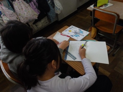 算数では,3つの分数を小さいものから並べ替えるにはどうしたらよいかを考え,3つの通分のしかたについて学習をします。