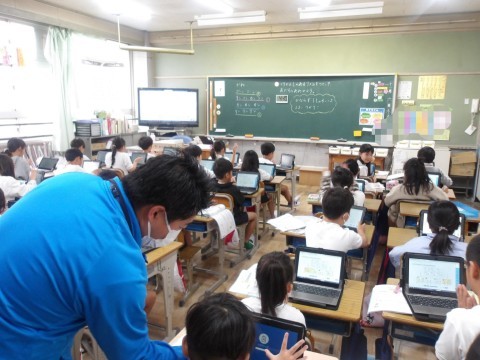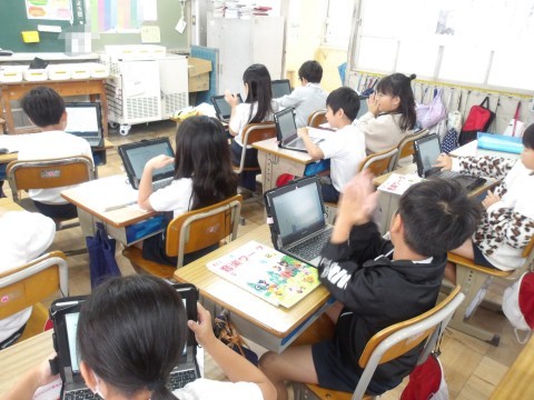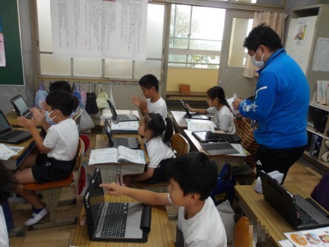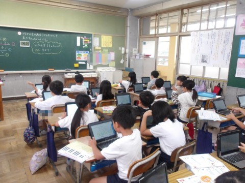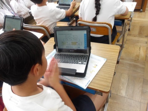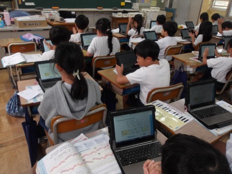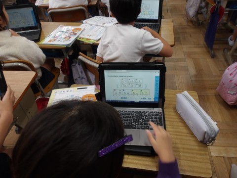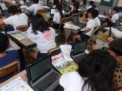 音楽では,くり返しのあるリズムを作って友だちと合わせます。上手にリズムを作れたかな?