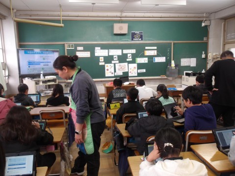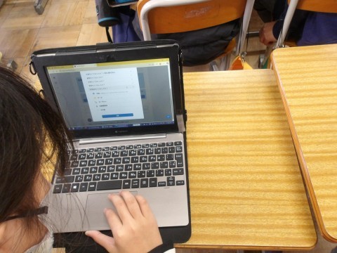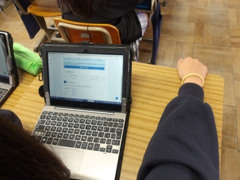 栄養教諭による排便指導が行われています。朝食や排便の様子を食育アプリで記録を取ります。