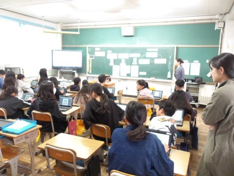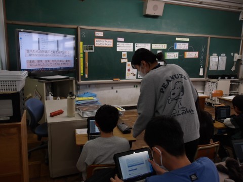 栄養教諭による排便指導が行われています。朝食や排便の様子を食育アプリで記録を取ります。