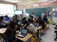 国語「鳥獣戯画」の学習をしています。絵と絵巻物に対しての筆者の主張を読み解いていきます。