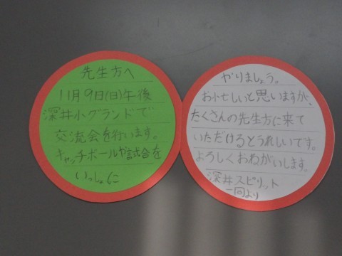 日曜参観日の午後から,子ども会ソフトボールチーム「深井スピリット」から先生チームへ,交流試合の申し込みがありました。ぜひ,対戦しましょう!先生チームも負けませんよ。