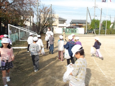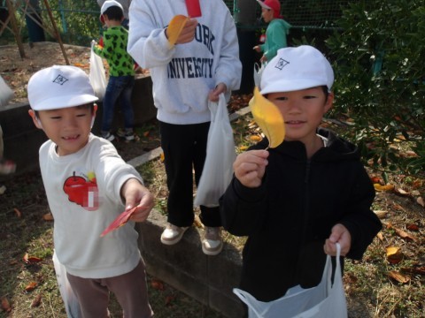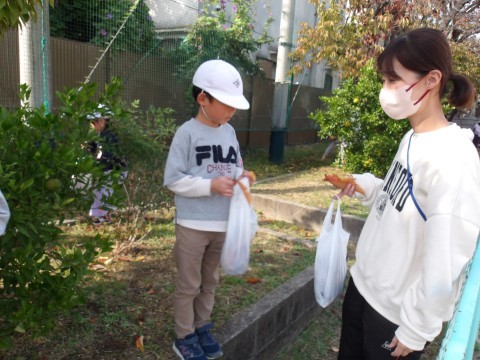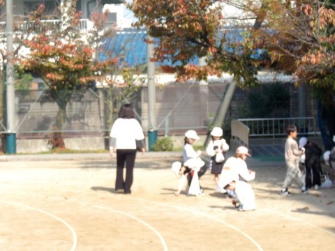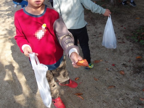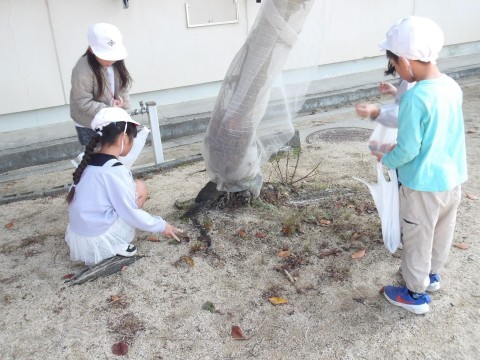 校内で,秋見つけをしています。日曜参観で作るリースの材料が見つかったかな?
