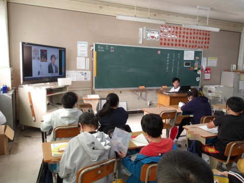 国語では,今日から「鳥獣戯画」の学習が始まりました。日本文化の魅力について学習をします。筆者「高畑勲」の人物について説明を聞き,プロから伝えるコツを学んでいきます。
