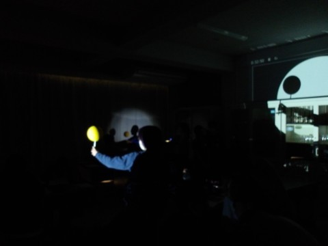 理科では,日によって月の形が変わって見えるのはなぜかについて,実験をして確かめます。