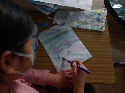 きれいな色に濡れていますね。一緒に何か作品を作りましょうね。