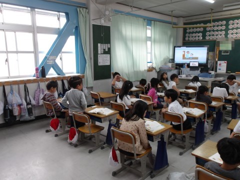 道徳「おふろそうじ」では,自分が頑張ったなと思うことを発表しています。自分の仕事をしっかりとすると,どんな気持ちになるかを考えます。
