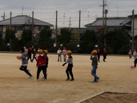 曇り空ですが,元気に外遊びをしています。教室でも先生と楽しく過ごしています。