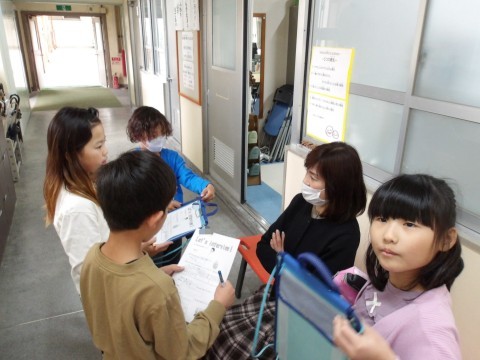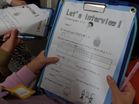 3年生が,外国語の授業のインタビューをするために,校長室を訪ねてくれました。英語であいさつをして,「What ~ do you like?」でたくさんの質問をしていました。