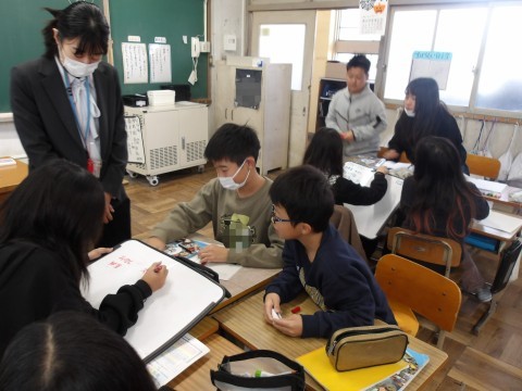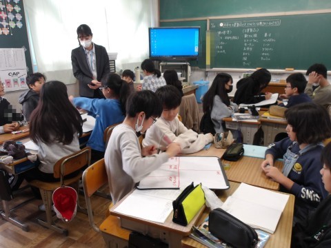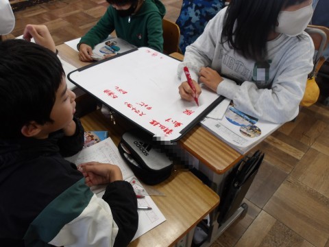 社会では,「日本の工業製品はどのように分類されるか」をグループで考えています。
