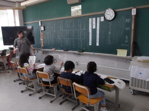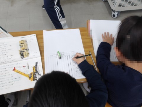 1年生は,みんなで「じどう車くらべ」の学習をしています。