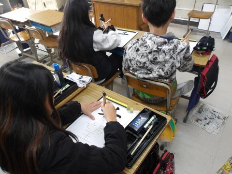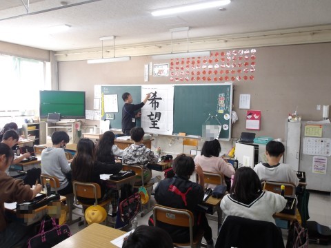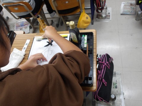 書写では,上下の組み立て方に気を付けて練習をしています。