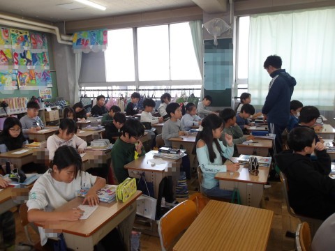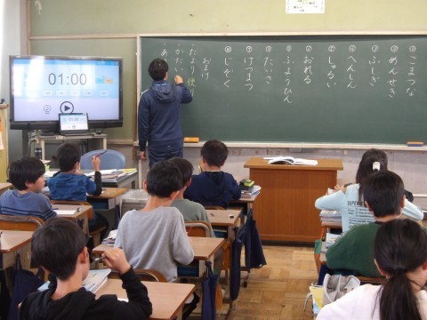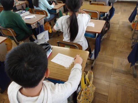 漢字の小テストが行われています。10問を終えた人は,おまけの3問にも取り組みます。