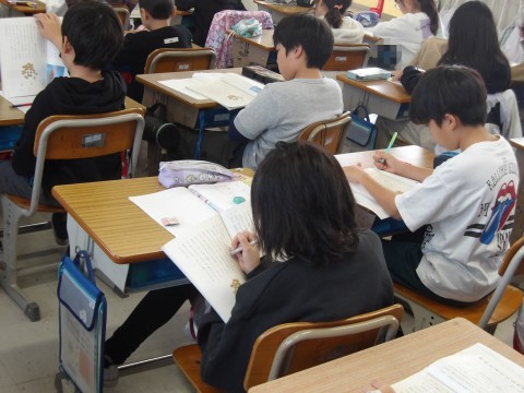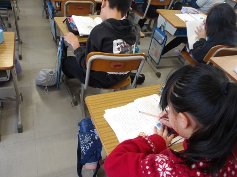 国語「すがたをかえる大豆」に入りました。先生が音読をしています。えんぴつで文字を負いながら,書き込んで聞いている人もいます。説明の仕方の工夫を知って,それを活かして,説明する文章を書けるようにします。