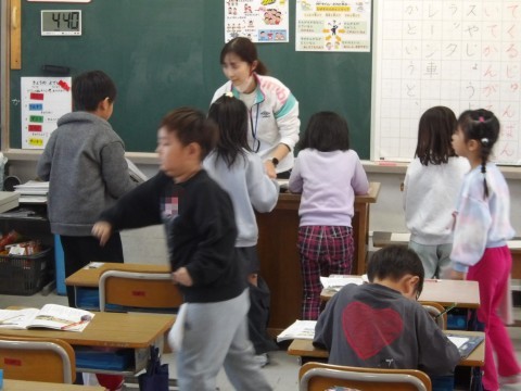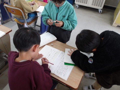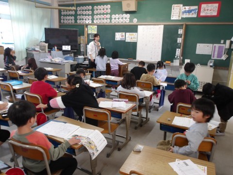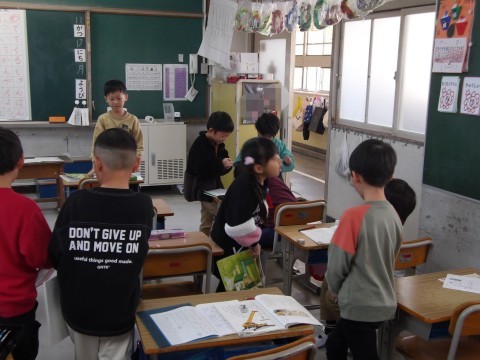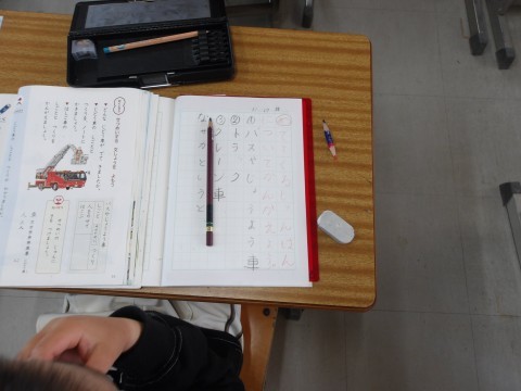 国語「じどう車しらべ」では,教科書に登場するじどう車の順番について考えます。マイタイムで,一緒に考える人を決めて,自分たちで取り組みます。