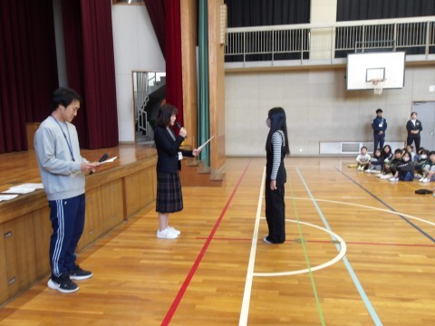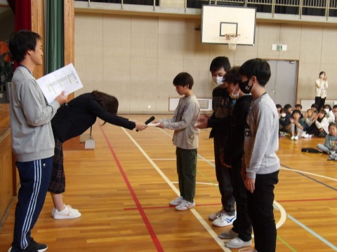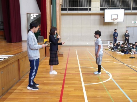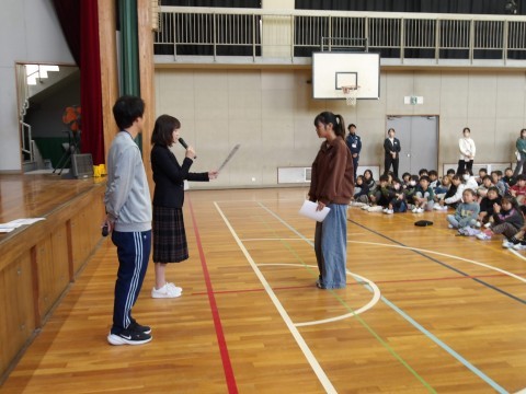今日は,連合運動会を始め,夏休みの作品に関する表彰を行いました。また,個人で取り組んでいる活動の表彰も行いました。