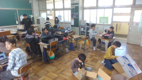 1学期から総合の授業で「役に立つもの」や「便利グッズ」を考えてきました。今日は、「創才サイエンスラボ」という企業さんに協力していただき,自分で考えたものを実際に作り始めました。音を鳴らしてみたり、段ボールで形を作ってみたりと、工夫しながら取り組んでいました。自分の思いが形になることに、子どもたちはとても嬉しそうでした。