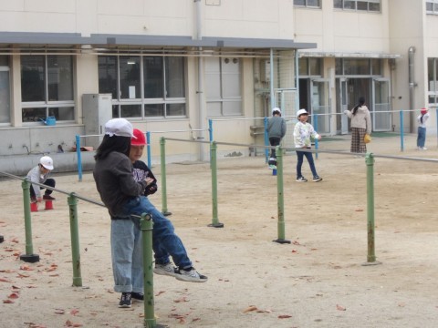 今日は,さほど寒くもなく,先生と一緒に外遊びをしています。