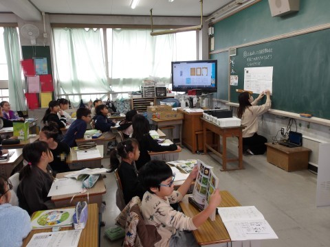 理科では,昨日の「跳ね返した光を重ねると,明るさはどうなるか」の実験結果を振り返り,まとめています。