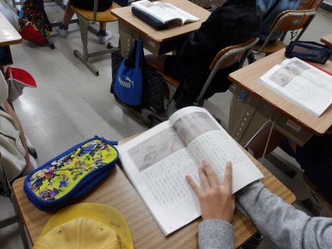 国語「鳥獣戯画」の音読では,すらすらと読み,次につなげていきます。