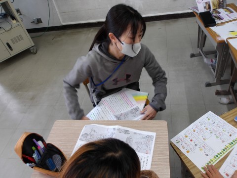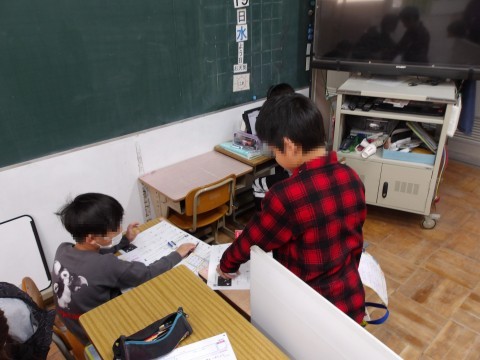 先生と学習やテストに取り組んだり,友だちと教え合ったりして学んでいます。