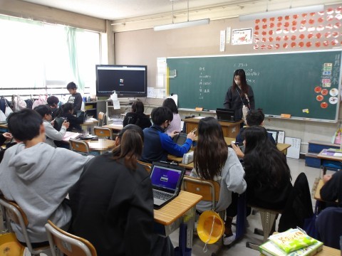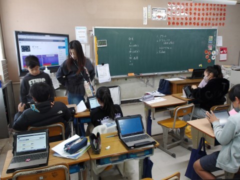 理科では,これまで学習したことをタブレットを使って復習をしています。
