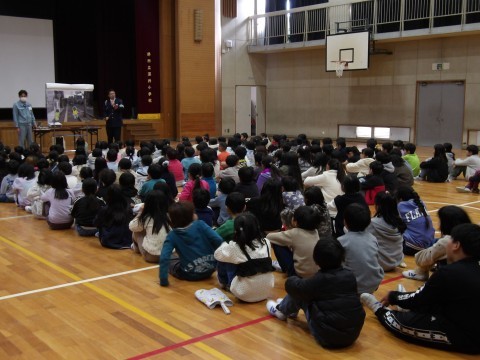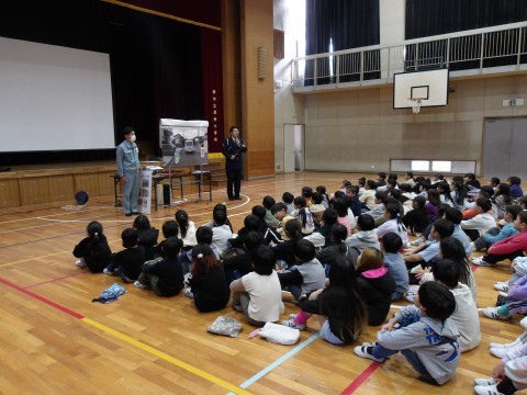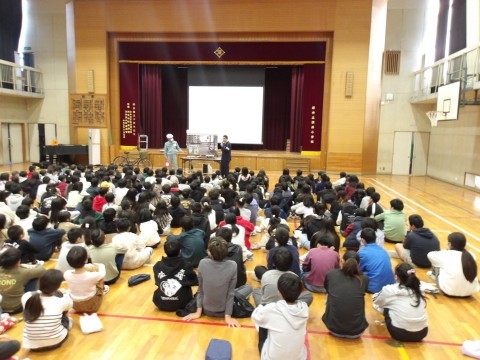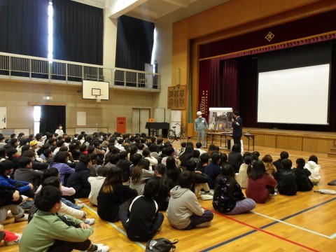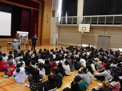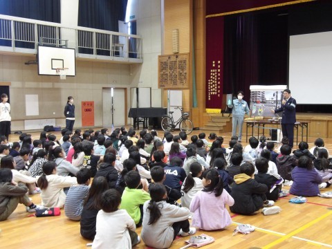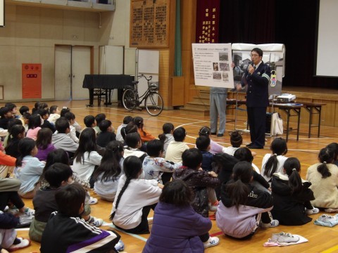中堺警察の方に来校いただき,1~3年生の部,4~6年生の部に分かれて,全児童を対象とした「交通安全教室」を実施しました。