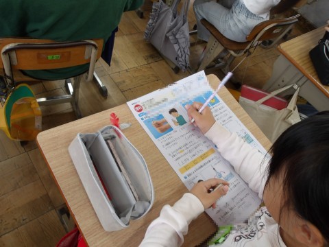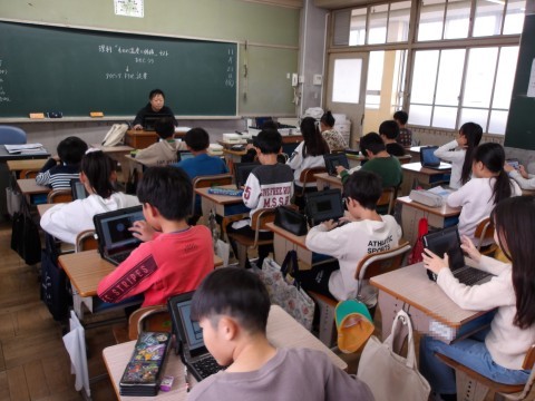 理科では,「ものの温度と体積」の単元テストが行われています。終わった人は,タブレットで復習をしたり,タイピングの練習をしたりしています。