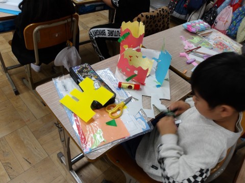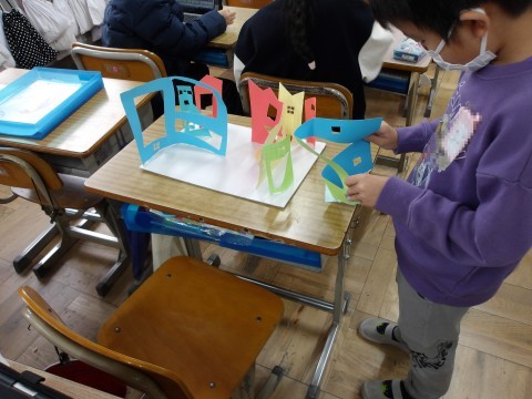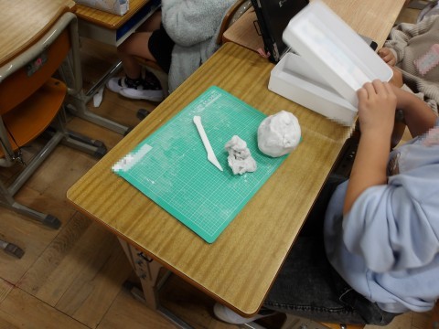 図工「窓をあけたら」を完成させています。出来上がったひとは,粘土をしたり,タブレットで学習をしたりしています。