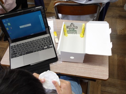 図工「のぞいてみると」では,箱の中に自分の世界を作ります。光を取り入れてどんな世界を作るのかな?