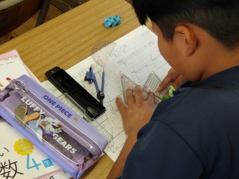 算数では,平行四辺形の特徴について学習をしています。実際に,平行四辺形をかいてみます。