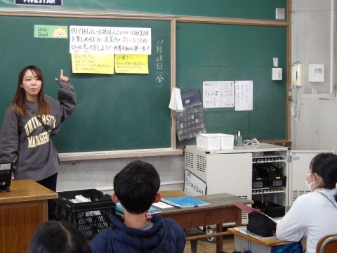 英語では,街で困っている外国人が日本を楽しめるように道案内と単惜しい会話のロールプレイに挑戦します。