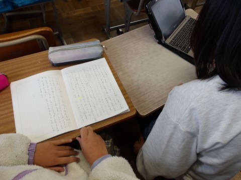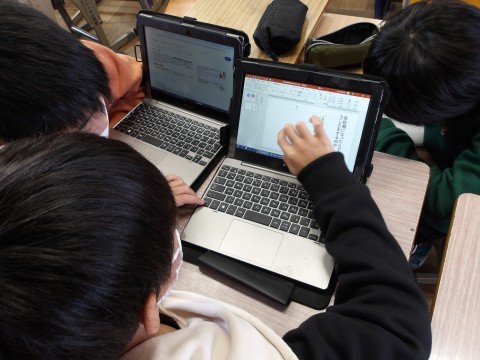 国語「固有種がおしえてくれること」では,自分が決めたテーマについて資料を使って文章を組み立て,パワーポイントを作成しています。