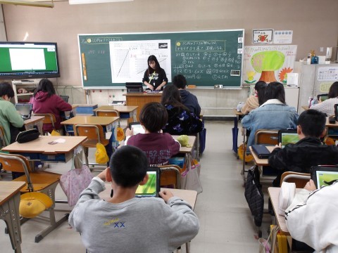 算数では,比例のグラフを書き学習をしました。復習は,カフートで行います。