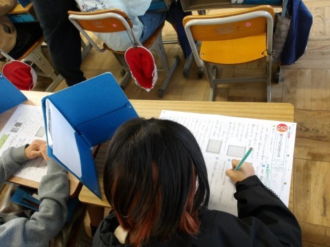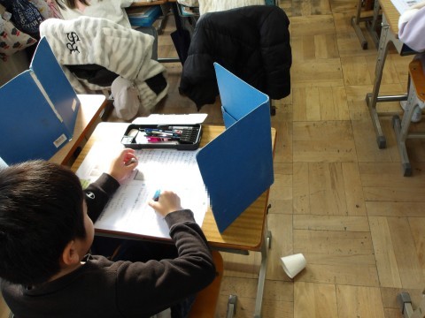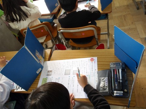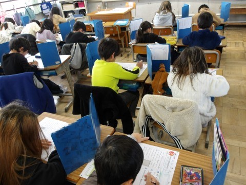 国語では,「紙コップ花火のつくり方」の単元テストが行われています。