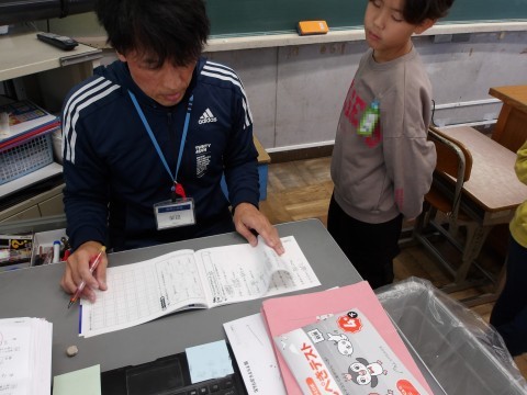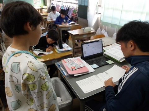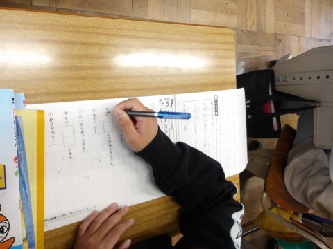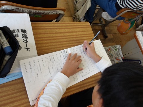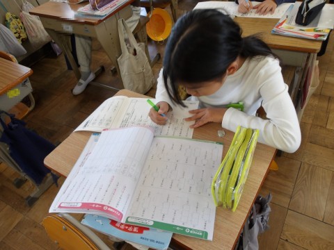 朝会で話があった「人権」について,担任の先生からも詳しく話を聞いた後,漢字の学習をしています。