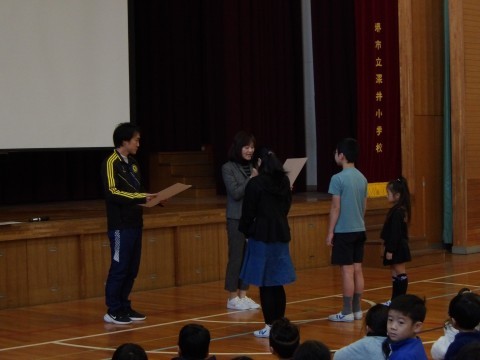 次に,それぞれの分野でがんばった,たくさん人たちが表彰されました。おめでとう。