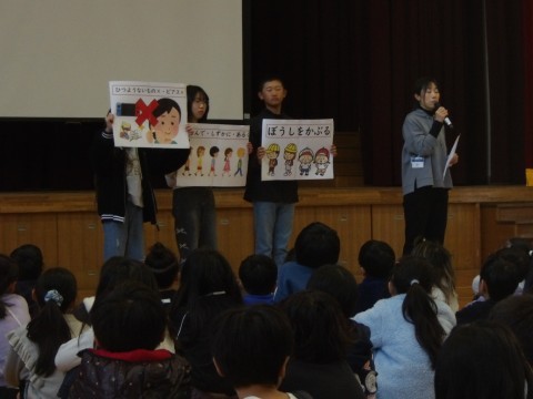 生活指導の先生からは,”帽子をかぶる” ”並んで静かに歩く” ”必要のないものは持ってこない”など,きまりを守り,生活態度をもう一度見直して2学期を締めくくりましょう。」と話がありました。