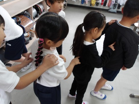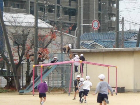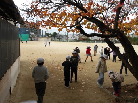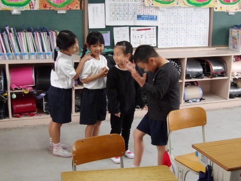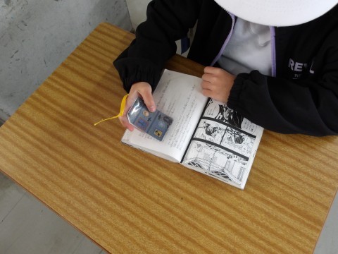 教室や運動場で,お友だちと楽しく過ごしています。たくさん本を読んでプレゼントしてもらったしおりを使って,本を読んでいます。