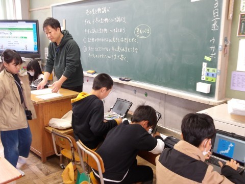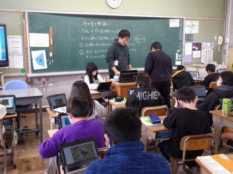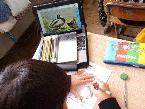 理科では,冬の生き物について,調べています。図鑑などを見て,形や大きさだけではなく,冬に見られる「冬の過ごし方」についても文で表します。