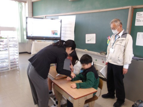 あおぞら学級では,「自立活動」の研究授業が行われました。子どもたちは,先生の話をよく聞いて動くことができていました。優しく声をかけたり,教えてあげたりする場面もたくさん見られました。