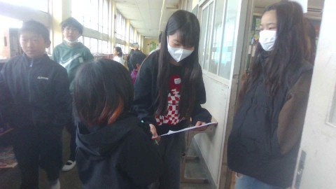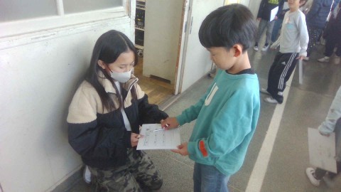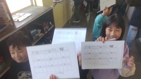 5年生がかけ算を聞いてくれています。合格ならサインを書いてもらえます!たくさん聞いてもらいましょう!