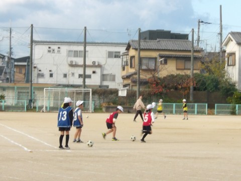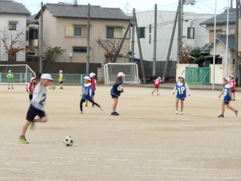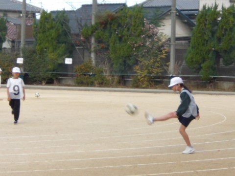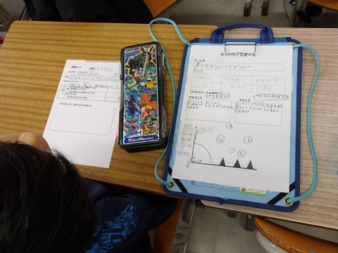 運動場の体育では,キックベースボールに取り組みます。チームでめあてを立てて,戦術を練ります。