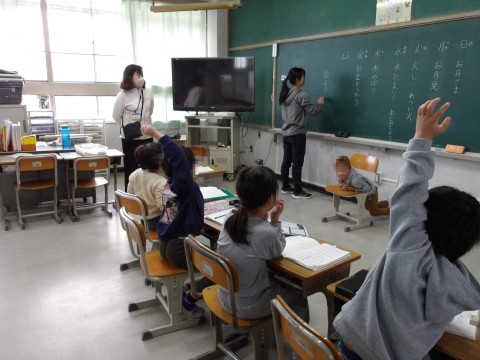 1年生は,曜日の漢字の読み方を学習しています。いろいろな読み方がありますね。4年生は「友情のかべ新聞」の読み取りをしています。東君,西君の関係をまとめます。