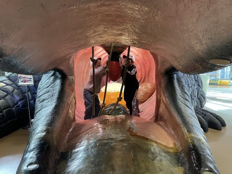 大きなワニの遊具やすべり台,ターザンロープなどで,たくさん遊ぶことができました。