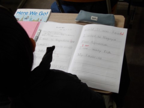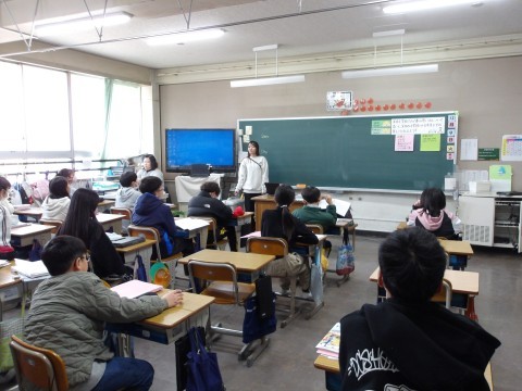 英語では,小学校での一番の思い出についてまとめ,深井西小学校6年生にその楽しさを伝え交流します。