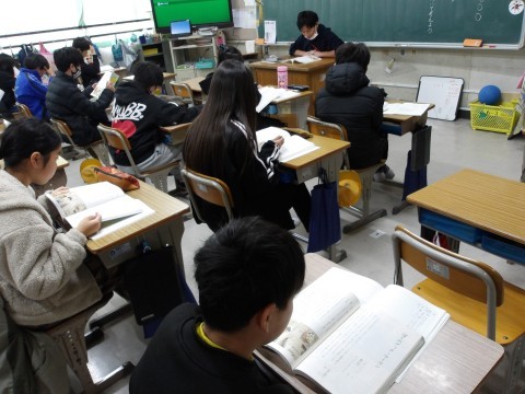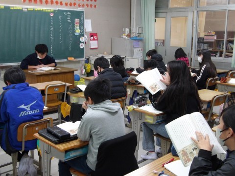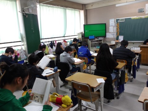 国語「ぼくのブック・ウーマン」では,みんなで音読をして,カルの心情の変化を読み取ります。